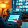 Pessoa configurando opções de cookies e privacidade em tablet com interface de vídeo